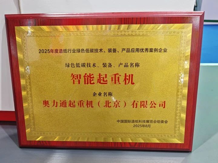 8月13日,在中国造纸协会及中国制浆造纸研究院主办的造纸产业绿色转型与融合发展大会上,米兰(中国)官网纸厂智能起重机凭借其在绿色低碳技术与智能装备领域的卓越表现,为米兰(中国)官网起重机赢得“2025年度造纸行业绿色低碳技术、装备、产品应用优秀企业”称号。