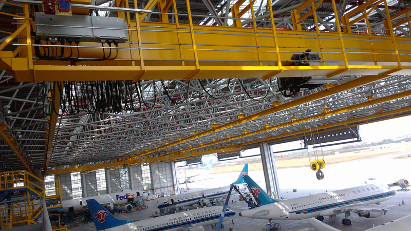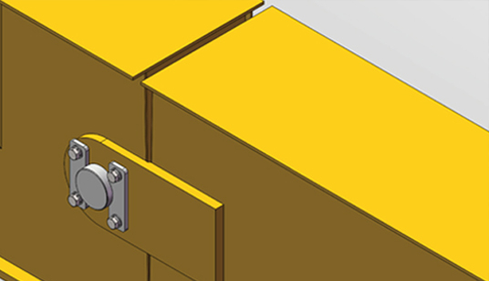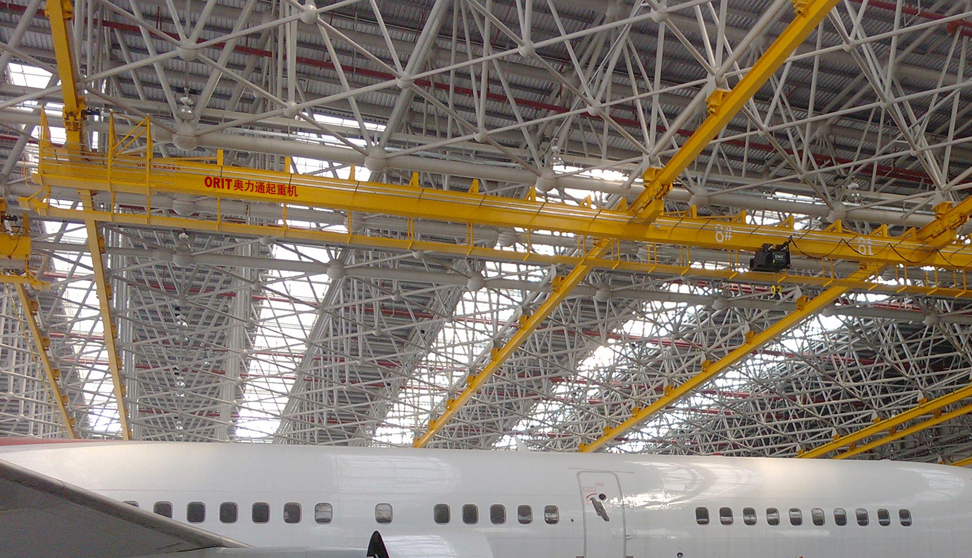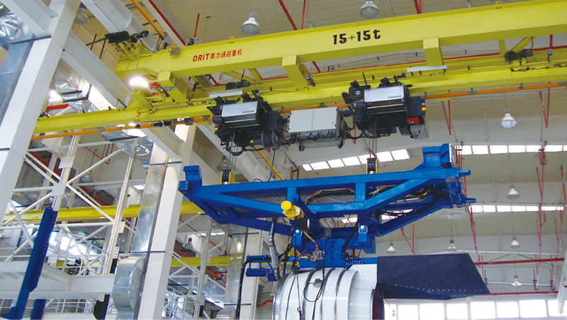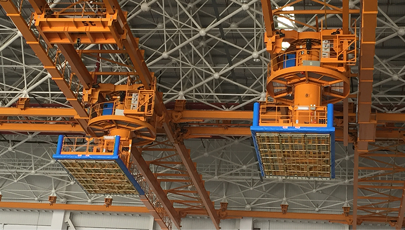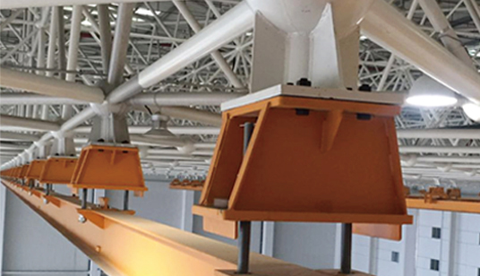 专利技术: 米兰(中国)官网发明专利技术(ZL 2009 10143701.X)吊点新设计为“柔性吊点”,是在原来的刚性吊点基础上增加吊杆和关节球轴承的可调部分,关节球承选用自润滑型,免维护设计,吊杆选用高强特制螺杆,连接强度高,便于轨道垂直方向调节;有效减小网架变形对起重机的影响。具有水平位移自动纠正功能;具有自适应性,避免啃轨;设计简单、制作方便、成本低廉。柔性主梁可有效减小侧向应力,避免啃轨,保证运行更加平稳。